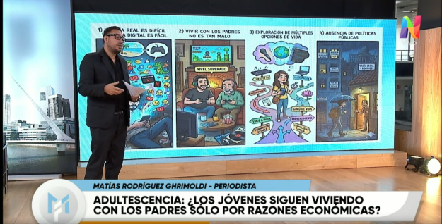 Matías Rodríguez Ghrimoldi, periodista, realizó un informe al aire de 'Modo Fontevecchia' en el que comentó cuatro teorías vinculadas a las razones por las cuales los hijos no se logran o no les interesa independizarse y continúan compartiendo el mismo techo con sus progenitores. Las razones van desde lo monetario, hasta elección de vida, mejor relación entre padres y falta de políticas públicas.