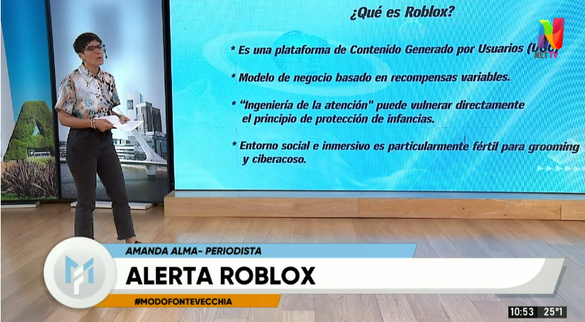 La periodista mencionó además informes que confirman que la ludopatía juvenil es un problema masivo ya que el 40% de los adolescentes de 15 a 29 años ha apostado recientemente en casinos online, dedicándole hasta dos horas diarias. La experta explicó que plataformas como Roblox, al exponer a los usuarios a compras recurrentes y recompensas aleatorias, funcionan como un caldo de cultivo ideal para prácticas de consumo desde la infancia, borrando el límite entre el entretenimiento y la publicidad.