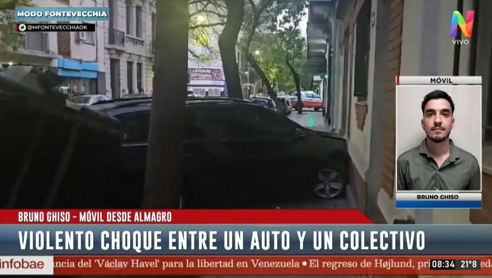 Este lunes por la mañana, el periodista Bruno Ghiso estuvo presente en el barrio porteño de Almagro, donde se registró un impactante choque entre un colectivo de la línea 92 y un automóvil. La transmisión se llevó a cabo desde la calle Mario Bravo al 600, en la intersección con Humahuaca y Guardia Vieja, donde el caos fue evidente.