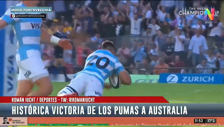 Y agregó: “La argentina en estas cuatro presentaciones en el Rugby Championship acredita un triunfo en Oceanía contra Nueva Zelanda, luego una derrota y contra los Wallabis perdido en uno en la cancha de Estudiantes el fin de semana pasado por un punto 20-19 y esta victoria extraordinaria para esperar con las mejores referencias los dos partidos que le quedan contra el campeón del mundo, Sudáfrica”.