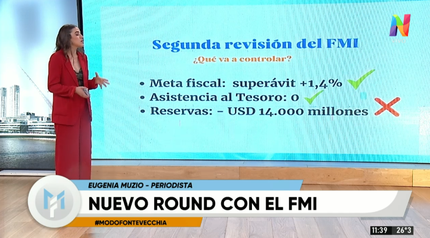 La periodista Eugenia Muzio analizó los objetivos de la comitiva técnica que arribó al país. El organismo realizará un monitoreo de la acumulación de divisas y el cumplimiento de las metas fiscales.