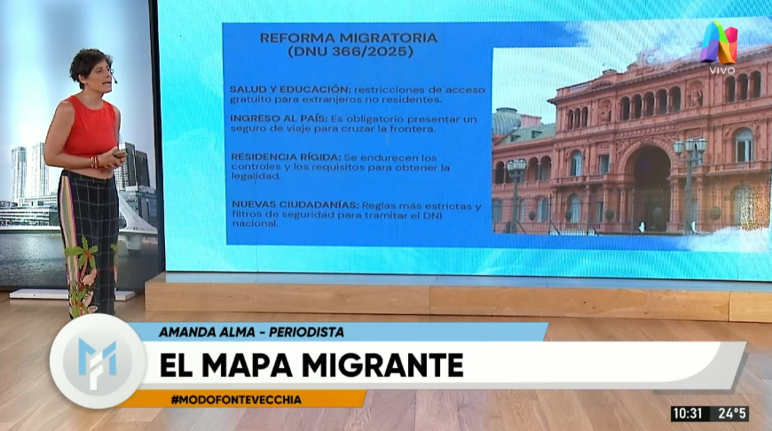 En una nueva entrega de ‘Modo Fontevecchia’, la periodista Amanda Alma presentó un detallado informe titulado ‘Mapa migratorio’, donde puso bajo la lupa el impacto del DNU 366/2025. Esta medida, lanzada por el gobierno de Javier Milei y reforzada a comienzos de este año, busca modificar estructuralmente las políticas de residencia y ciudadanía en el país.