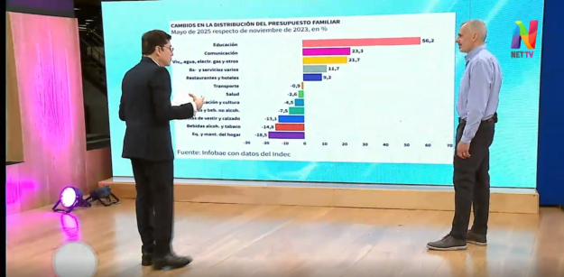 La educación tuvo un incremento del 56,2%, la comunicación 23,3% y los servicios públicos 22,7%, todos ellos representan los gastos que las personas tenían anteriormente. “Los dos primeros tienen una gran influencia en lo que respecta al índice que se publica todos los meses y que conocemos el próximo 13 de septiembre. Esto no quiere decir que vaya mucho más para arriba o abajo, pero será más claro, contundente y preciso”, comentó.