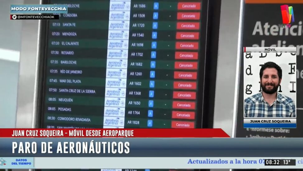 Este viernes, el móvil de “Modo Fontevecchia” ofreció una cobertura exhaustiva del caos que se vivió en el Aeroparque Jorge Newbery debido al paro de aeronáuticos. En una jornada marcada por la agitación, Juan Cruz Soqueira reportó en vivo desde el corazón del desorden aéreo, donde aproximadamente 15.000 pasajeros quedaron varados debido a la medida de fuerza que suspendió todos los vuelos sin posibilidad inmediata de reprogramación