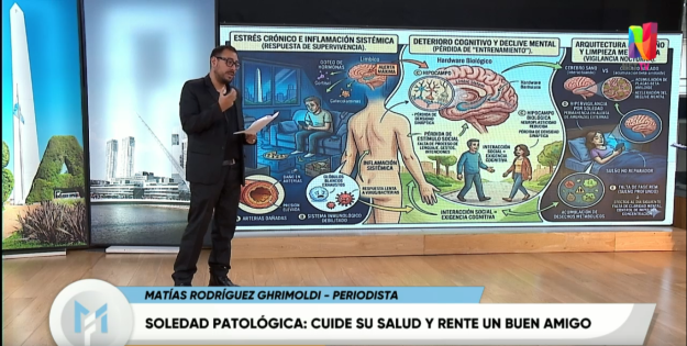 El cerebro siente y hay una reacción de estrés, pero es de un estrés crónico. Se eleva la cantidad de cortisol y las catecolaminas a nivel permanente y lo que va generando que es que la reacción inmunológica se vuelva más torpe, se descompense la presión arterial. El cuerpo se empieza a desgastar profundamente por altos niveles de soledad, la interacción humana es una de las mayores actividades humanas en relación a la plasticidad de nuestro cerebro y uno de los estimulantes neuronales más importantes. Pero al no hacerlo elevo los problemas neurológicos, las cuestiones de la demencia senil, el alzheimer, enfermedades neurodegenerativas”, sumó en cuanto a la falta de interacción con otras personas al aire de NET TV.