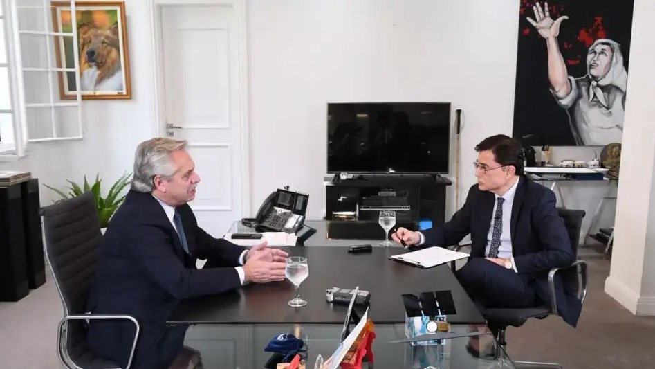 El viernes a las 16 terminó su conversación con Kristalina Georgieva y comenzó su entrevista más larga en un día lleno de tensiones por el rechazo en Diputados del Presupuesto. Tres horas de conversación en un balance de la primera mitad de su mandato. Residencia Presidencial de Olivos