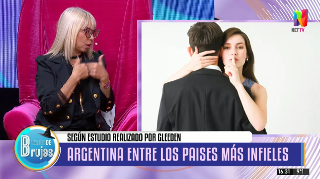 Argentina fue señalada como el segundo país más infiel de Latinoamérica, solo superado por Brasil, según un estudio de Gleeden. Este dato, que refleja que el 34% de los argentinos han admitido haber sido infieles desencadenó un debate en ‘Tarde de Brujas’, donde Pilar Smith, como conductora temporal en lugar de Anamá Ferreira, exploró las causas culturales y sociales de esta tendencia.