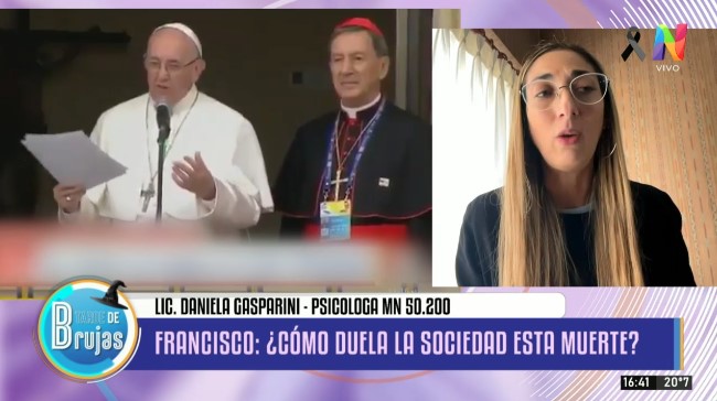 La muerte del pontífice conmocionó a grandes y chicos, y en ‘Tarde de brujas', Anamá Ferreira entrevistó a la psicóloga Daniela Gasparini, quien analizó cómo esta muerte afecta su salud emocional de los más jóvenes. La especialista ofreció una mirada profunda sobre el luto en las nuevas generaciones.