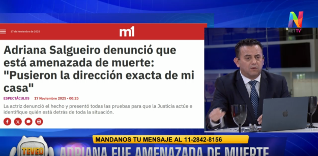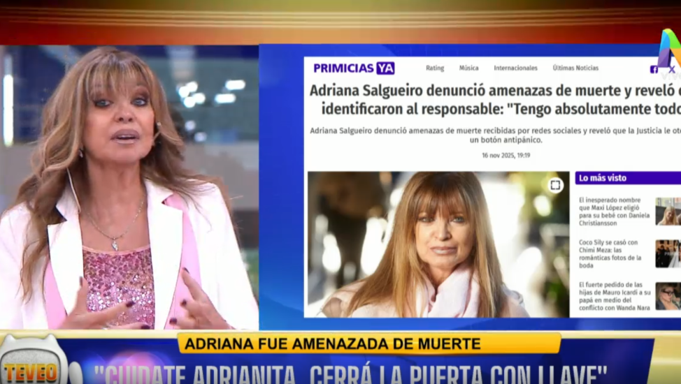 La presentadora fue notificada por su compañero de vida e hizo la denuncia por recibir amenazas de muerte de quien ya fue identificada. “Cuidate, Adriana, cerrá la puerta con llave. Te conviene. Mirá que algo te puede pasar”, fueron las palabras textuales de la acusada previo a introducir la ubicación de la casa.