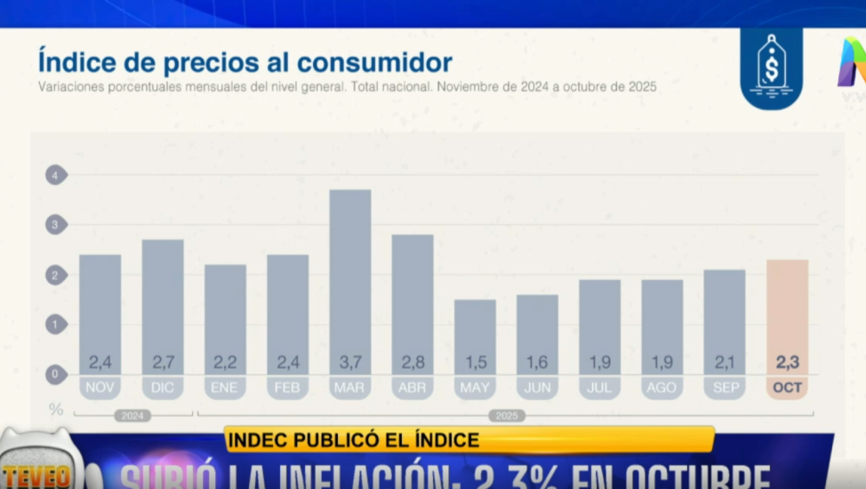 Lo cierto es que durante las últimas horas de este miércoles 12 de octubre el Instituto Nacional de Estadísticas y Censo de la República Argentina (INDEC) dio a conocer el porcentaje inflacionario de octubre y nuevamente se registró una alza con respecto a septiembre que fue de un 2,1%: 2,3% es lo que informó oficialmente el organismo en relación al décimo mes del 2025.