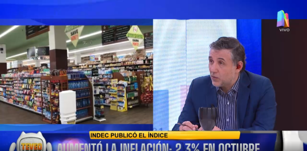 “El Índice de precios al consumidor (IPC) registró un alza con respecto a octubre y lleva un 31,3% interanual, mientras que 24,8% en lo que va del año. 2,3% es lo mismo en lo que quedó el equilibrió de alimentos y bebidas, por encima quedaron transportes con un 3,5%, 2,,8% en viviendas, 2,4% en bienes y servicios”, comenzó diciendo el panelista de Net TV.