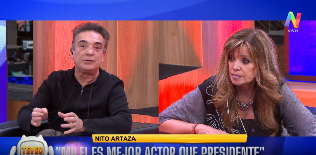 Teniendo en cuenta la experiencia y el interes público hacia la política de Nito Artaza, Adriana Salgueiro consultó acerca de cómo ve el país: “Soy optimista respecto al país, en cuanto al Gobierno sucede lo que iba a suceder. Fui el primer productor Javier Milei en el teatro con el ‘Consultorio de Milei’, una obra que fue éxito. Es mejor actor que Presidente, lo prefiero de esa forma. Es lo que la gente eligió, la democracia es así“.