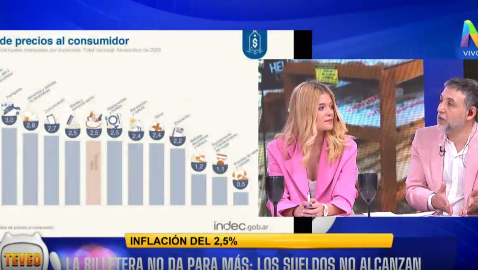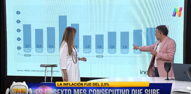 “Si analizo la grilla de inflación, está subiendo desde junio. Si tengo 1,6% en junio y terminó en 2,5% ahora, está lejos de bajar y está subiendo. Para un país que quiere normalizar, es altísima y es un inflación que es enorme, un 3% es lo que tiene Estados Unidos en todo un año”, complementó Santiago Llull al aire de Te veo todas las tardes.