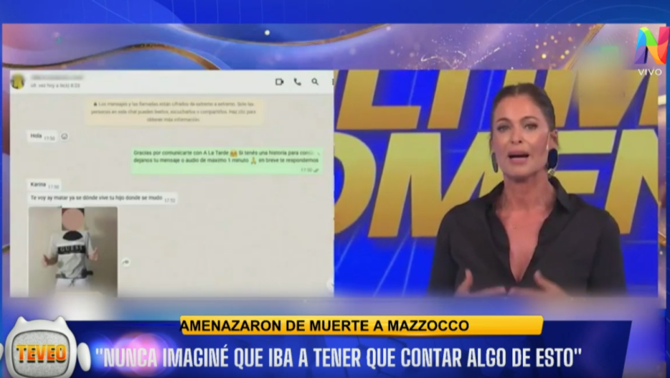 Karina Mazzocco, conductora de A la tarde, fue amenazada de muerte en la previa a que comenzara su programa en la pantalla de América TV mediante un mensaje que recibió el número de WhatsApp al que habitualmente se comunican sus televidentes. Frente a este acontecimiento, la conductora y sus compañeros realizaron la denuncia pertinente en la Policía y aguardan por conocer el emisor de este turbio mensaje.