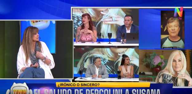 En Te veo todas las tardes, programa conducido por Adriana Salgueiro y un panel de profesionales, repasaron el saludo de Mario Pergolini hacia Susana Giménez, y posteriormente debatieron si fue con una mezcla de ironía y verdad. “Me encanta el video porque amo a Mario, fue una bestia por las cosas que dijo pero apostaría por esa reconciliación. Creo que Susana no quiere saber nada“, opinó la presentadora.