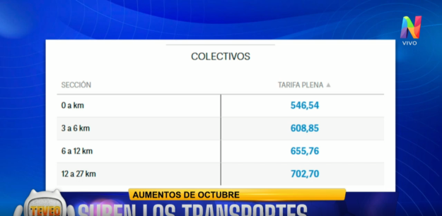 En Te veo todas las tardes, con la conducción de Adriana Salgueiro y el acompañamiento de un gran panel, Santiago Llull informó que el alza del boleto se dará en colectivos, subtes y premetro: “Es automático y del 2% más la inflación del mes de agosto que fue de 1,9%. Por lo tanto, hablamos de un total de 3,9%“.