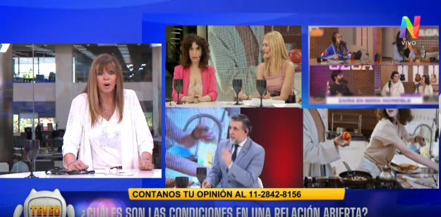 La panelista de Te veo todas las tardes respondió la consulta de Adriana Salgueiro acerca de una relación abierta: “No me gustan. O estás soltera o en pareja. Si estoy en un vínculo y el otro está buscando algo en un tercero, cuarto o quinto no terminás de completar una pareja. Para relación abierta, quedate sola”.