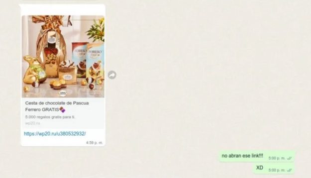 Será porque el chocolate subió su valor en los últimos años y es un producto que a millones de personas le gusta en demasía, o sea cual fuere la razón, muchos cayeron en esta amenaza de phishing: un link por WhatsApp que ofrece de forma gratuita una cesta de chocolates.