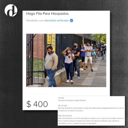 A raíz de esta alarmante situación, algunos ciudadanos se las ingeniaron para sacar provecho. “Hago fila para hisopados” se podía leer en uno de los anuncios de Mercado Libre. Rápidamente, el posteo fue dado de baja por la empresa, ya que no se permite publicar servicios de obtención de cita y/o gestoría de trámites que sean personales, como lo son en este caso.