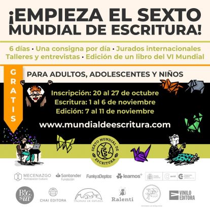 “El Mundial de Escritura es una invitación abierta a escribir. No hay que ser escritor ni tener experiencia previa; solo ganas de sumarse y el compromiso de escribir un texto por día entre el 1 y el 6 de noviembre, a partir de ejercicios propuestos por escritores y artistas”, explican desde la página oficial.