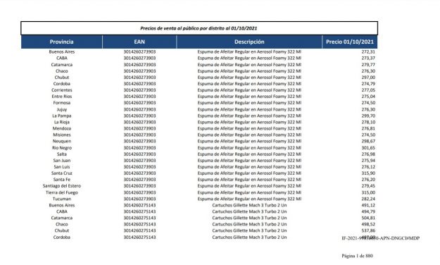 “Establécese, hasta el 7 de enero de 2022, la fijación temporal de precios máximos de venta al consumidor final, para todos los productores, comercializadores y distribuidores de los productos” que forman parte de un listado de 881 páginas que está anexado a la Resolución, según el texto oficial.