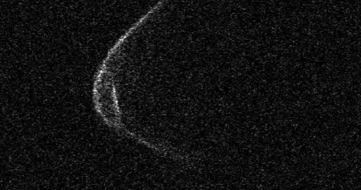 El Observatorio de Arecibo en Puerto Rico mostró una imagen de radar del asteroide que pasará a 3,9 millones de millas (6,3 millones de kilómetros) de la tierra el miércoles 29 de abril.
