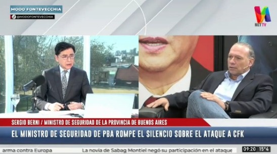 Sergio Berni otorgó una entrevista a Modo Fontevecchia la mañana de este miércoles a través de las pantallas de Net Tv. Aseguró que su silencio ante el intento de magnicidio contra la vicepresidente Cristina Kirchner es por prudencia y que no tiene alguna otra intención.