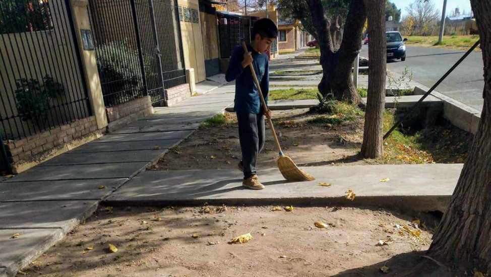Tiene 10 años y barre veredas para comprarse un par de botines