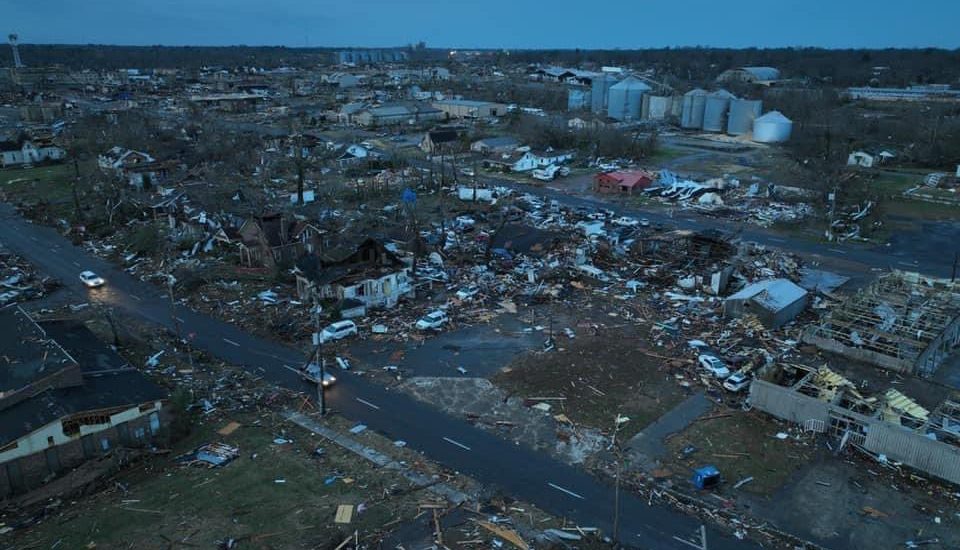 En Mayfield (Kentucky), la mayoría de las construcciones de esta ciudad fueron destruidas por el tornado y hay más de 92 mil personas sin suministro eléctrico.